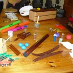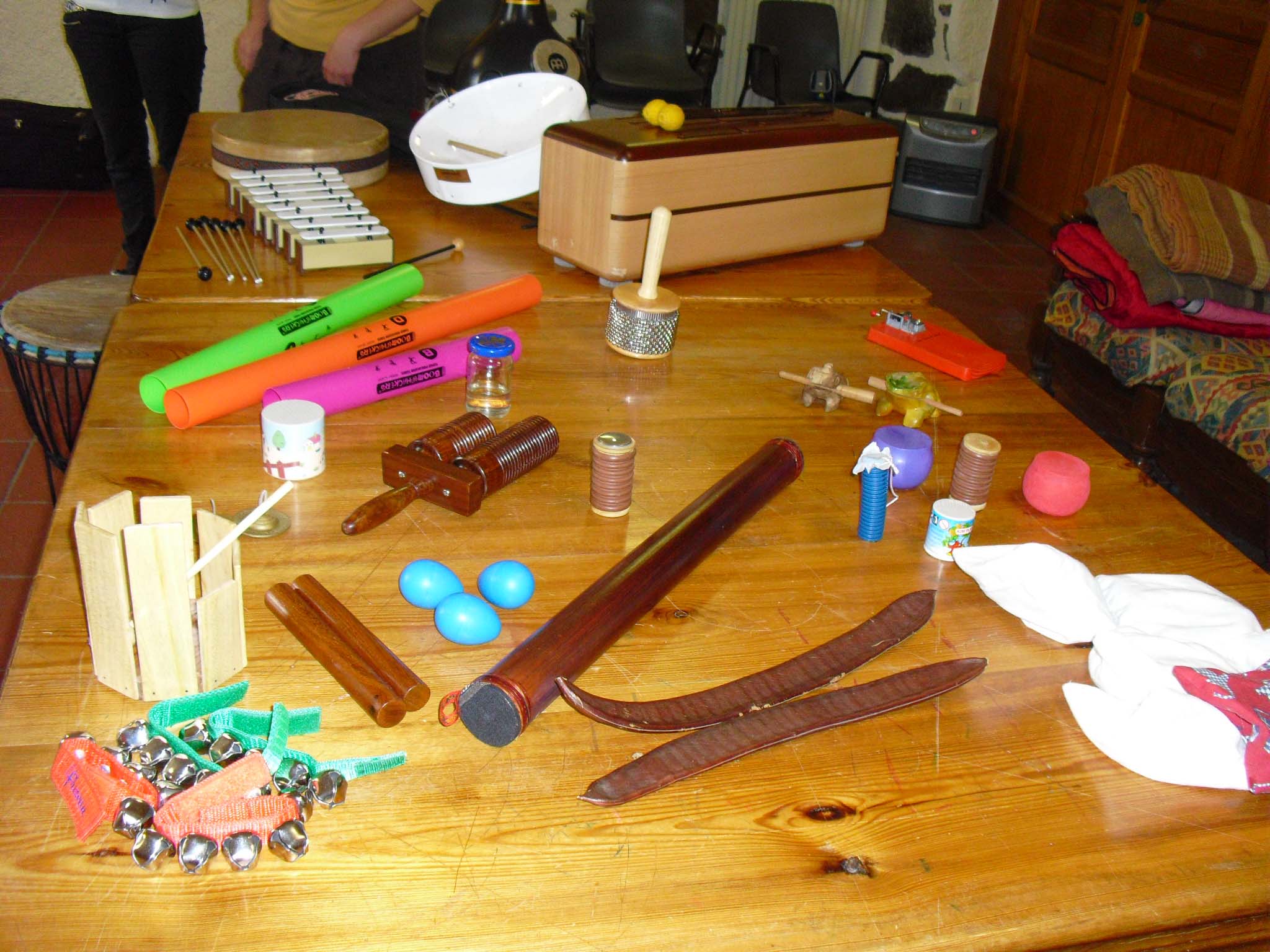 - Différents instruments de musique (petites percussions, djembe, tamboa, "objets sonores")