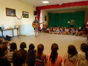 Tous les jours, nous chantons le matin (en français, en anglais et même en espagnol) ; nous commençons vraiment à avoir un beau répertoire à présent !